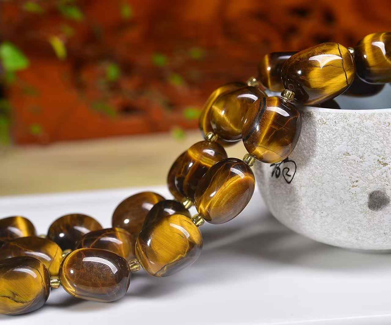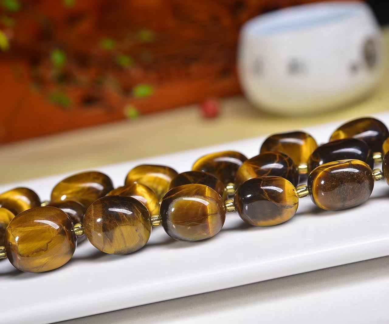 Yellow tiger's eye fat freeform beads about 12mm